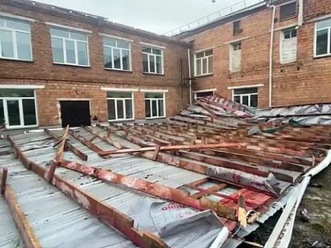 Крыша "приземлилась" на школьном дворе. К счастью, обошлось без пострадавших.