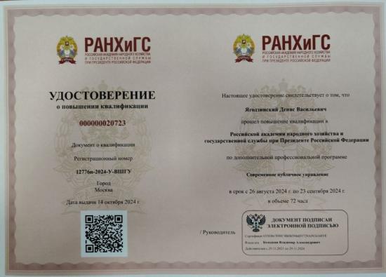 Курс охватил тысячи участников специальной военной операции. Темами практических занятий стали делопроизводство и деловая переписка государственных и муниципальных служащих, эффективные устные и письменные коммуникации, основы цифровой грамотности и методология управления. Каждый модуль завершался промежуточным тестированием. После учёбы Дениса Ягодзинского и других выпускников зачислили в кадровый резерв для эффективного и непрерывного пополнения вакантных государственных должностей.