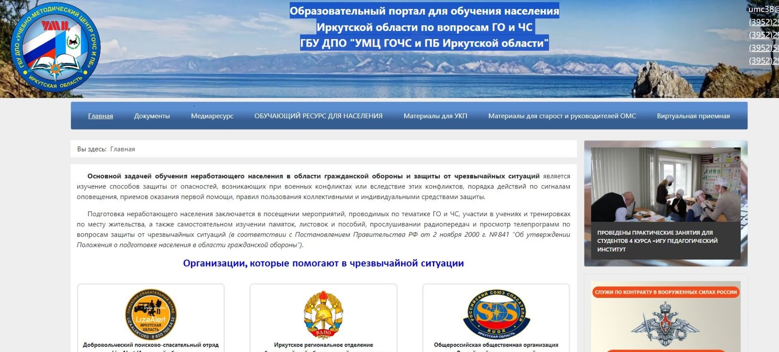 Образовательный портал для обучения населения Иркутской области по вопросам ГО и ЧС